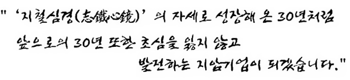 고객 여러분의 성원과 질책이 지암기업 발전의 원동력이 된 것처럼, 삼십여 년 동안 축적된